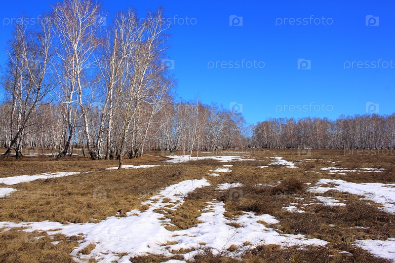 Ранняя весна на полях и в лесах Омской области