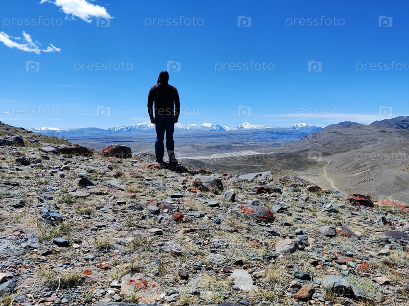 Мужчина восхищается видом на Северный хребет Чуй на Алтае Марс