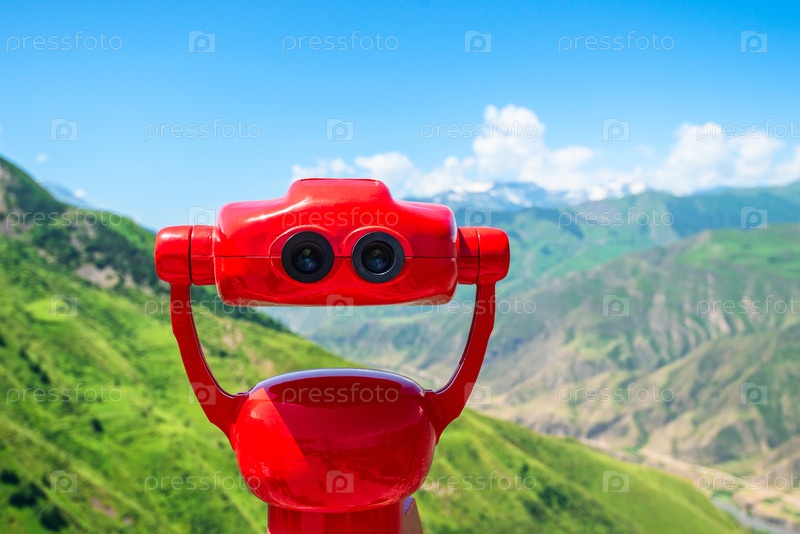Красные бинокли с видом на горный каньон