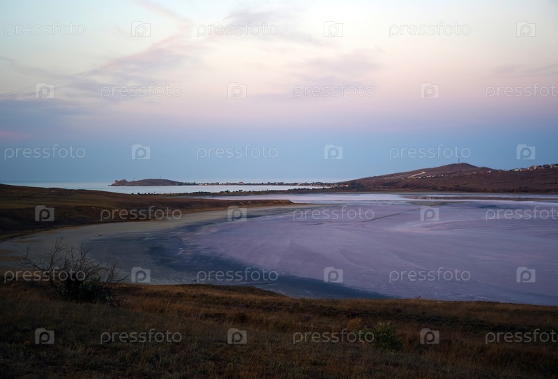 Летний закат над морем и грязевым озером в Крыму