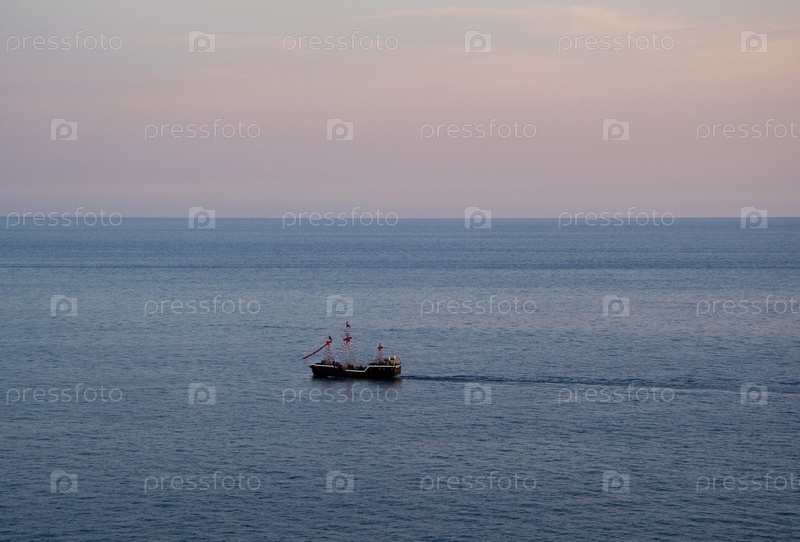 Корабль в море на закате