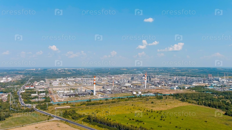 Кстово, Нижегородская область, Россия Нефтяной нефтеперерабатывающий завод на шоссе М7 Волга Южный обход Нижегорода Вид с воздуха