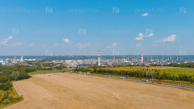 Кстово, Нижегородская область, Россия Нефтяной нефтеперерабатывающий завод на шоссе М7 Волга Южный обход Нижегорода Вид с воздуха