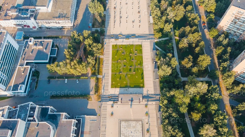 Ижевск, Россия - 24 сентября 2022 года: Полет над центром города, вид с воздуха