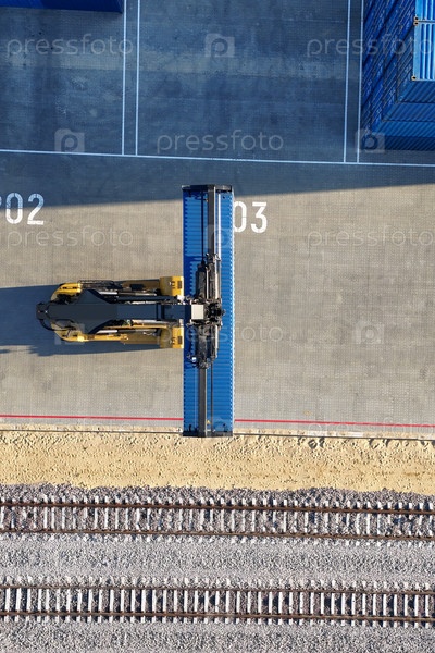 Погрузка грузового контейнера на судно в терминале на земле для логистики грузовых контейнеров
