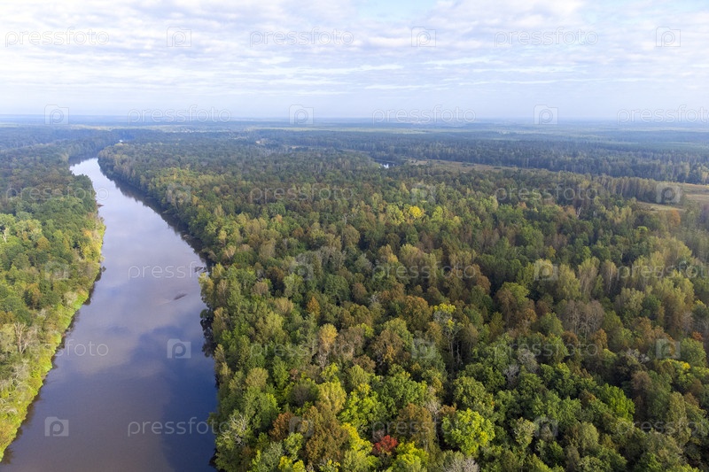 Вид на лесную реку и пышный зеленый лес сверху. высокоугольный снимок деревьев и реки. фоновая информация с концепцией углеродной нейтральности или нулевой углеродистой сетки