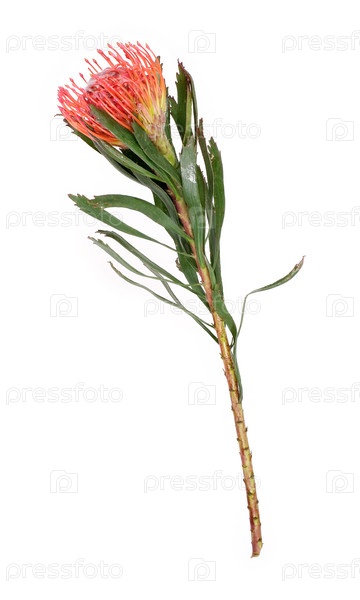 Цветок Leucospermum (подушка) выделен на белом фоне, резка готова