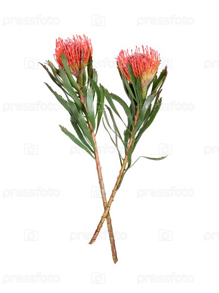 Цветы Leucospermum (подушки) выделены на белом фоне, резка готова