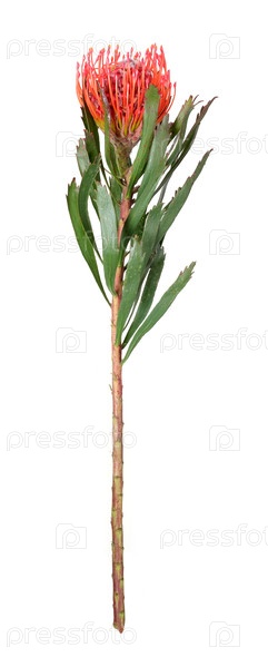 Цветок Leucospermum (подушка) выделен на белом фоне, резка готова