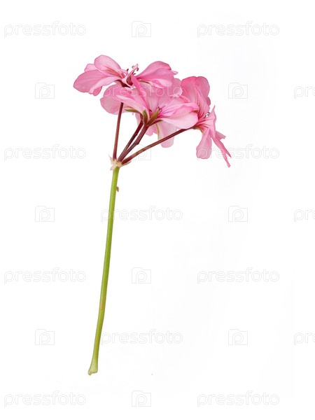 Один стебель с нежными розовыми цветами герания, выделенным на белом фоне, резка готова. очень высокое разрешение