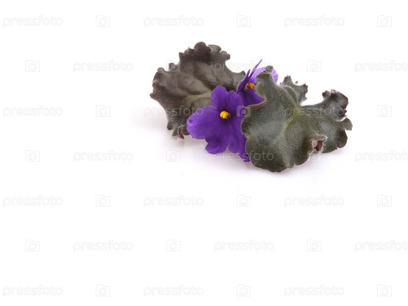 Фиолетовые цветы с темно-зелеными листьями, верхний вид изолирован на белом фоне, высокое разрешение