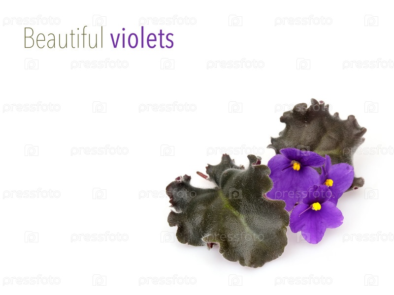 Фиолетовые цветы, листья и текст выделены на белом фоне с высоким разрешением