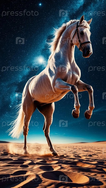 Лошадь стояла на заднице на фоне звездного неба