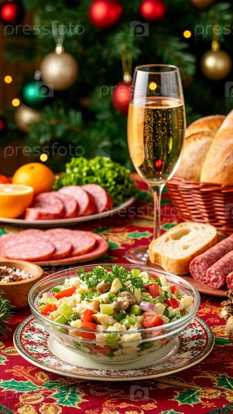 Праздничный стол, расставленный на Новый год
