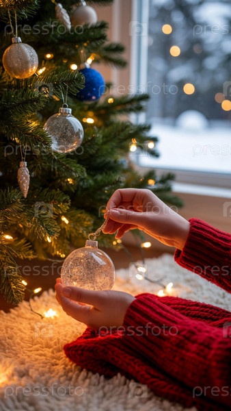 Украсьте рождественскую елку игрушками и шарами