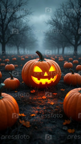 Тыква на поле Хэллоуина