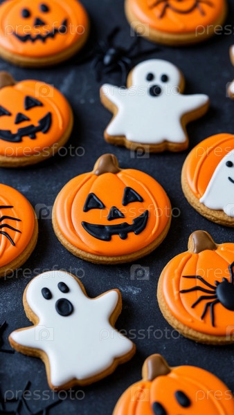 Имбирный торт в виде тыквен и призраков