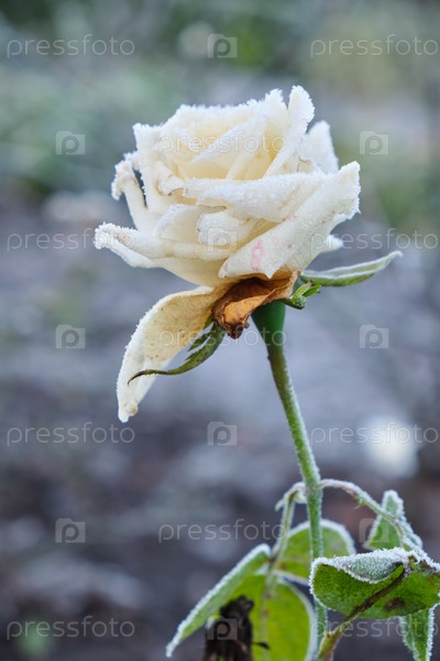 Бело-розовые цветы, покрытые морозом