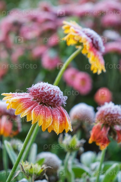 Гейлардия или одеяло из цветочных цветков, покрытых морозом