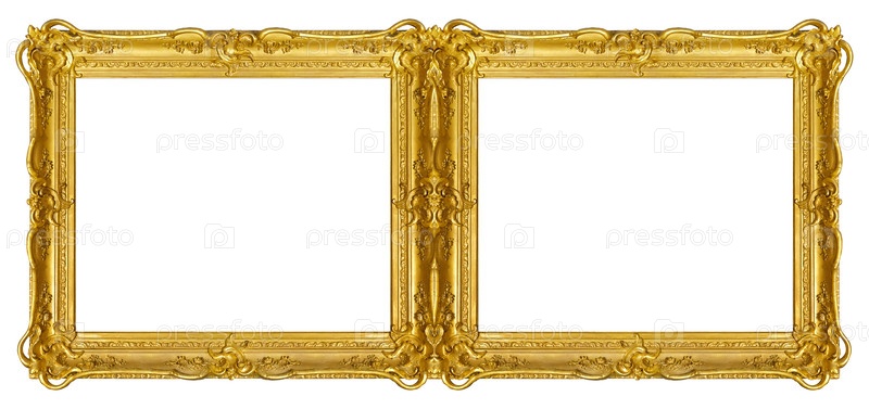 Двойная золотая рама (диптих) для картин, зеркал или фотографий, выделенных на белом фоне