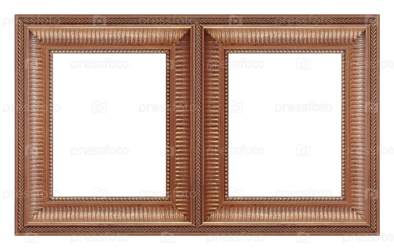 Двойная деревянная рама (диптих) для картин, зеркал или фотографий, изолированных на белом фоне