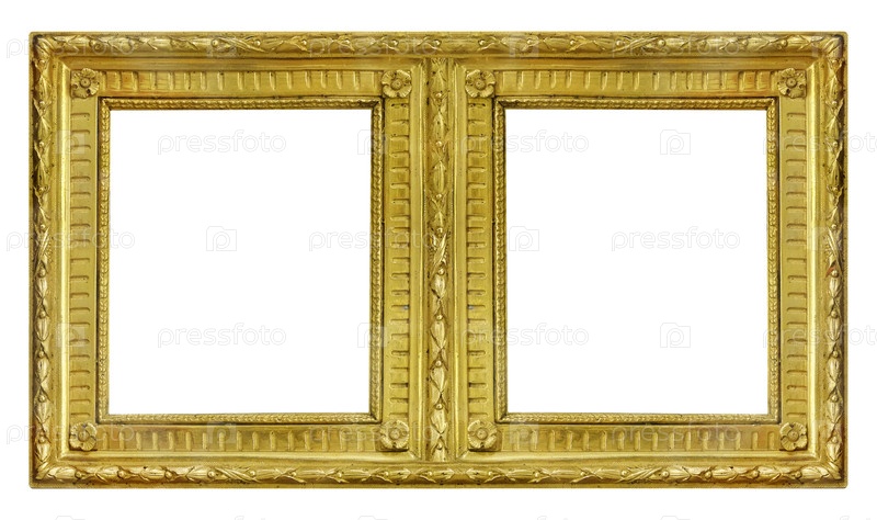 Двойная золотая рама (диптих) для картин, зеркал или фотографий, выделенных на белом фоне