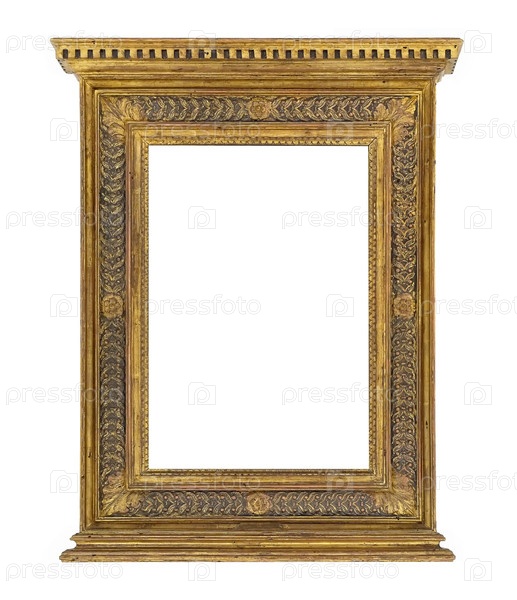 Золотая готическая рама для картин, зеркал или фотографий, изолированных на белом фоне