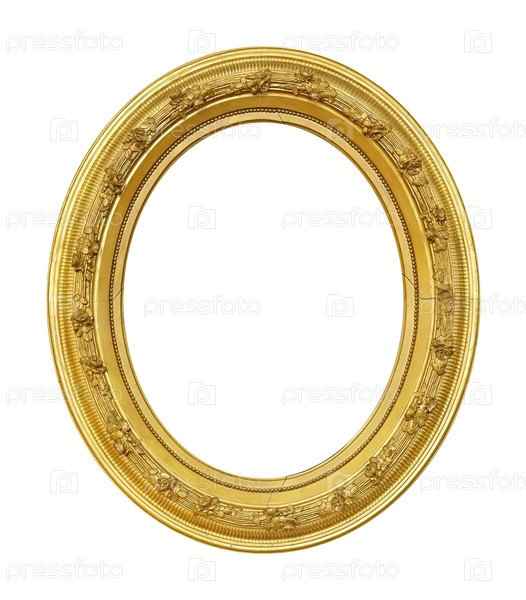 Золотая овальная рама для картин, зеркал или фотографий, изолированных на белом фоне