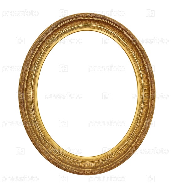 Золотая овальная рама для картин, зеркал или фотографий, изолированных на белом фоне