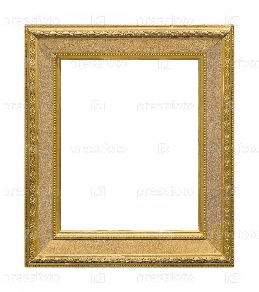 Золотая рама для картин, зеркал или фотографий, изолированных на белом фоне