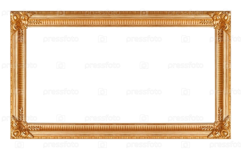 Панорамная золотая рама для картин, зеркал или фотографий, изолированных на белом фоне