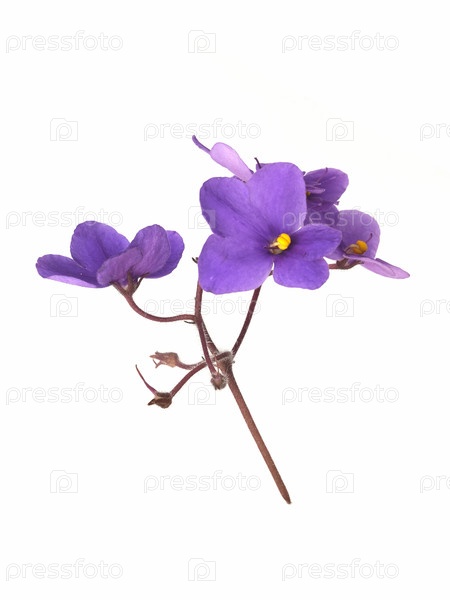 Фиолетовые цветы Сентполии, также известные как африканские фиалки, изолированные на белом фоне имеют чрезвычайно высокое разрешение