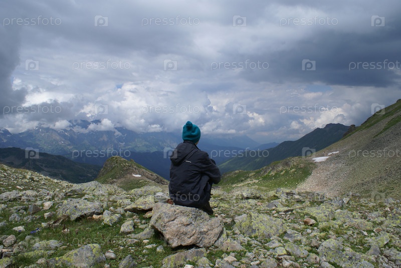 Горный пейзаж с туристом