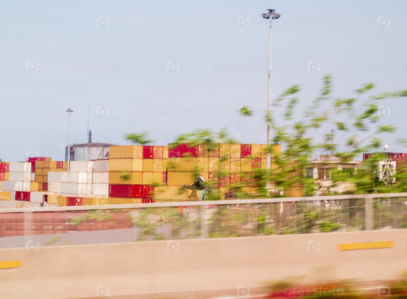Выстрел из судоходных контейнеров, наложенных в порту. industrial