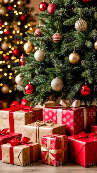 Много подарков под рождественской елкой