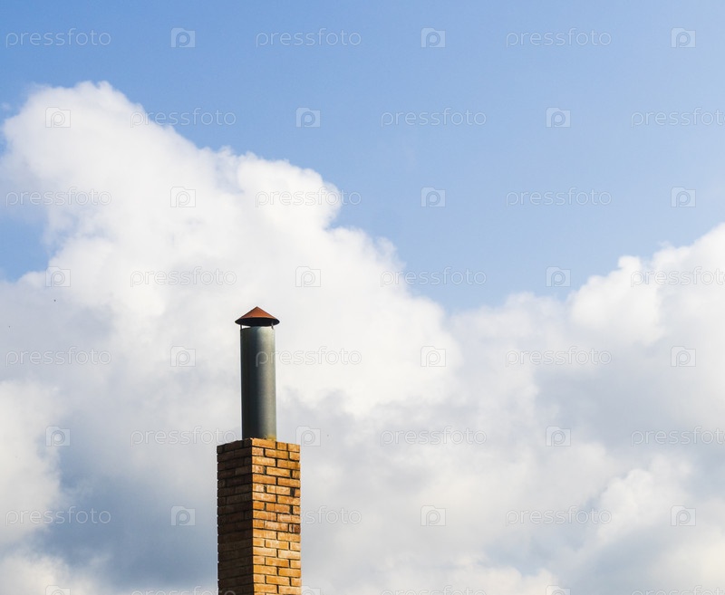 Концептуальный снимок печи, дымохода с облачным небом на заднем плане