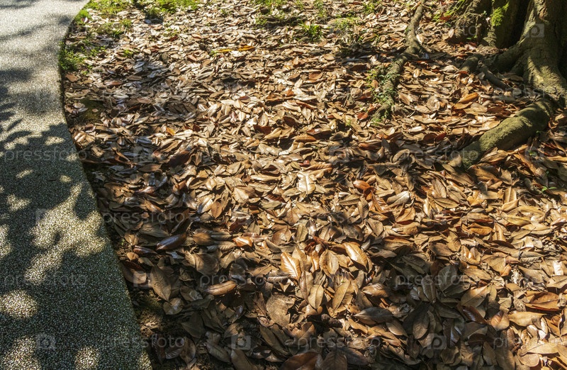 Снимок сухих листьев на земле. текстура
