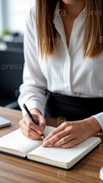 Молодая женщина в офисе записывает планы