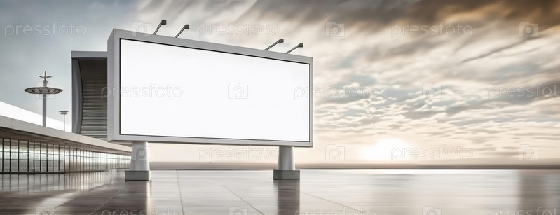 Большой наружный рекламный щит среди драматического облачного неба на закате солнца. Пустая поверхность для рекламы. Копировать пространство