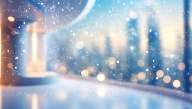Мягкий фокус зимнего городского пейзажа со снежинками и боке