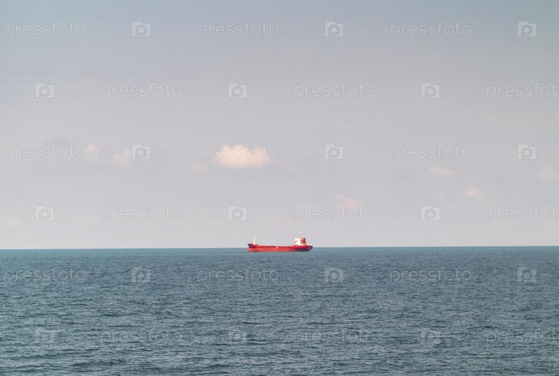 Крупный грузовой корабль, контейнерное судно на открытом море. промышленные