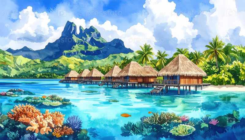 Механические виллы вблизи коралловых рифов и пышных гор, что приводит к морскому биоразнообразию, тропическому туризму и экологической красоте
