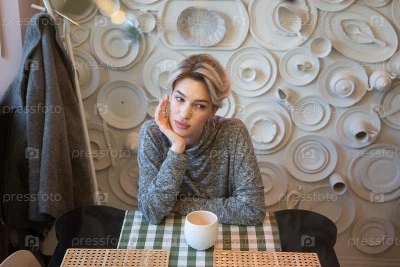 Красивая молодая женщина, сидящая в кафе