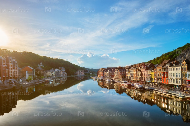Вид на живописный город Динантес.Бельгия