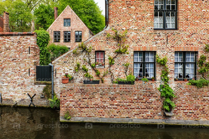Средневековые кирпичные дома в Брюгге вдоль канала