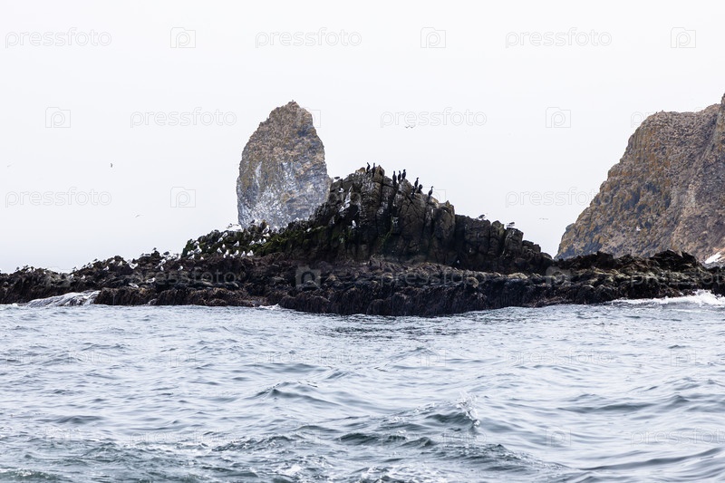 Птицы-гильмоты на острове в бухте Авача