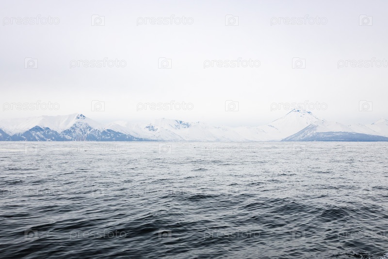 Вода и снежное побережье Тихого океана, залив Авача
