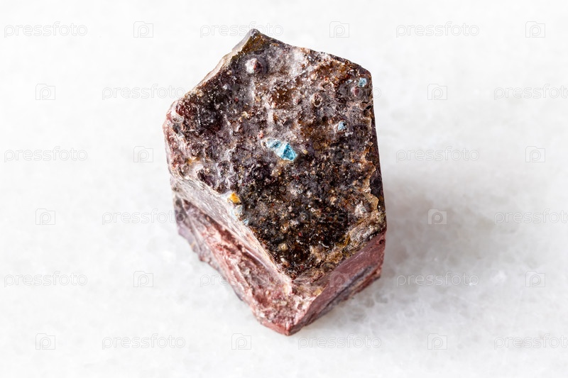 Образец грубого мукайте на белом мраморе
