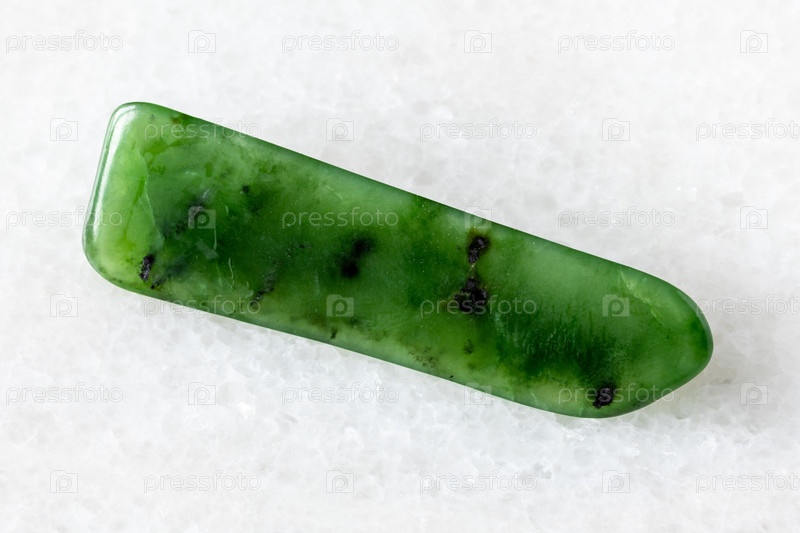 Образец полированного минерала зеленого нефрита на белом