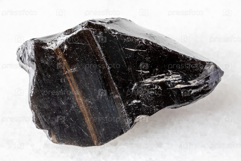 Образец грубо полосатого минерала обсидиана на белом